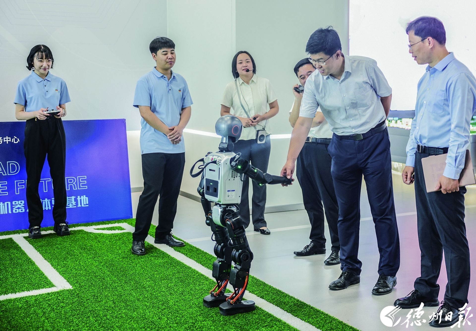 “您好,我是‘小创’,有什么可以帮您?”9月12日,在位于天衢新区的京津冀创新转化(德州)中心,一位身高1.2米、体重30公斤的“新同事”——人形机器人“小创”,正以流畅的语言与来访客商亲切交流。它不仅能够清晰介绍中心概况,还能灵活回应各类提问,展现出近乎真人的交互能力。