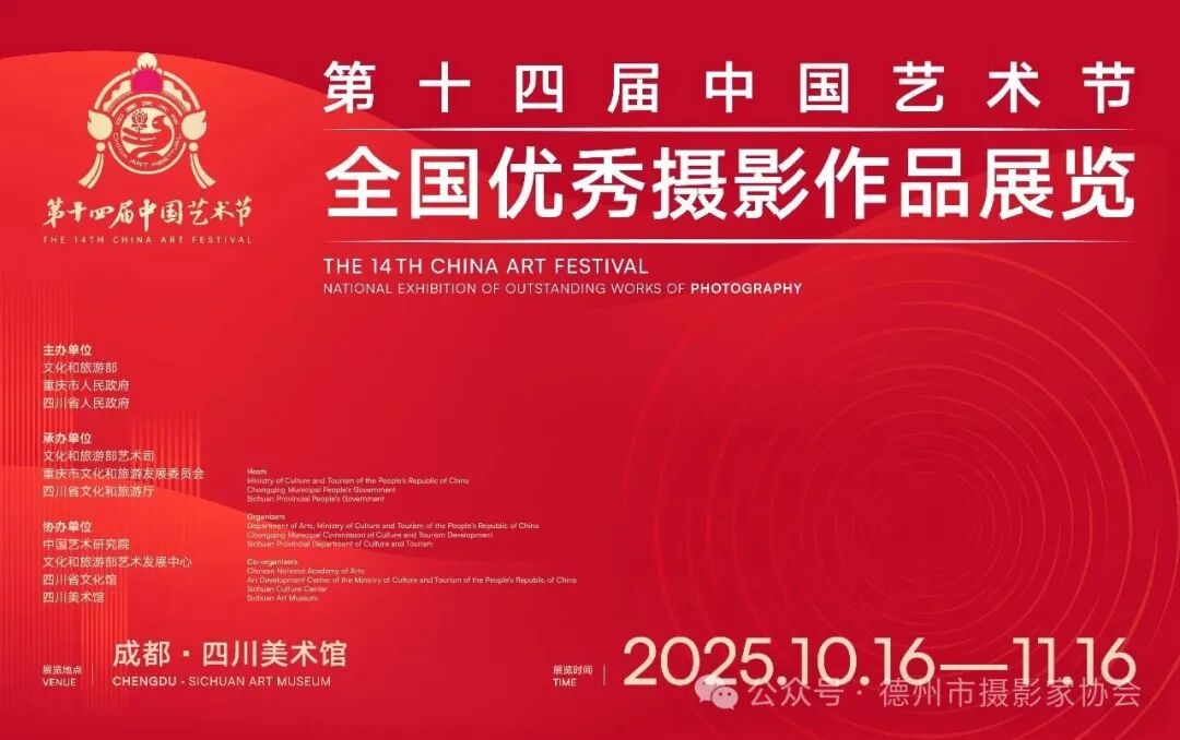 10月16日,由文化和旅游部、四川省人民政府、重庆市人民政府共同主办的第十四届中国艺术节在成都盛大启幕。德州市摄影家周建新作品《国粹少年》亮相第十四届中国艺术节全国优秀摄影作品展。这是我市摄影作品首次亮相中国艺术节。